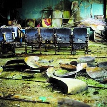 切尔诺贝利核电站附近电影院已无观众入场,只剩下排排斑驳的座位。