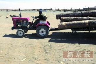 从“苏尼特右旗”到中蒙边境城市“二连浩特”的路上,部分沙土蔓延到还未完工的208国道上。过往的车辆用报纸遮住车牌和车灯,遇到强烈的沙尘时,便在路边停车等候沙尘散去。一位加油站的工人说,这样可以保护汽车在沙尘中行进时,车牌和车灯不会变成“磨沙”的。