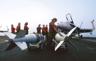 (本报资料图片)美国考虑用核武器攻击伊朗!美军参谋长联席会议中的部分高级军官,因反对核打击计划,正在谈论辞职问题!美军战机已开始进行空投核弹训练!——伊朗的大型军演刚刚结束,当世界舆论还在回味“七种武器”的时候,美国又给世界带来了新的惊愕。伊朗核问题的赌注在迅速升高。以前是外界能不能劝说伊朗放弃核计划,现在是美国会不会自二战以来第一次将核弹投入实战。后者的冲击力显然要大得多。世界的目光再次转向美国:华盛顿的决策者究竟要干什么?