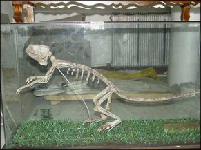 记者进入这个名为“家电论坛”的网站,在“杂货铺”论坛中,见到一篇发布日期为4月29日,标题“卖恐龙,48万,私人收藏”的帖子。文中称出售恐龙骨架化石,并简单介绍了化石的尺寸,同时还附有两张装在玻璃器皿中的恐龙化石图片。