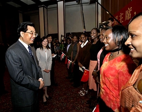 4月29日,国家主席胡锦涛在肯尼亚内罗毕会见孔子学院师生。这是胡锦涛主席与师生们亲切交谈。 新华社记者 兰红光摄