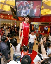 在新世界底楼的售票厅内,摆放了一尊高大的姚明像,周边有一圈围栏。不过在此合影是不用花钱的,因而引来不少围观者。人群中不少年轻父母对围栏旁“请勿入内”的警示熟视无睹,几次三番想把小孩子抱进围栏与明星蜡像来个零距离接触,令一旁的保安措手不及。