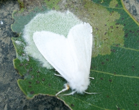 美国白蛾以其危害之烈,被称为“白袍巫师”。在东营市林业局林保站工程师商金杰的办公室,他向记者展示了美国白蛾的照片。照片上这些小动物看上去似乎非常温顺,拥有一对漂亮的纯白色双翅。然而就是这样一种小动物,却有着让人称奇的“胃口”。“一旦幼虫开始吐丝结网,吞噬叶片,它们可以把整棵树的叶子吃光,吃完树叶吃蔬菜,吃完蔬菜啃庄稼,所到之处,一片狼藉。”商金杰说,在我国东北地区,美国白蛾一年发生2代,而到了黄河三角洲由于温度、湿度适宜,一年可发生3代,一只雌蛾最多可产卵2000粒,种群数量会以几何级数激增。