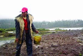 工程领队藏民农奴(编辑注:藏语音译,以下皆同)和队友躲在天池旁边的木房子里避雨。他说,5月5日,香格里拉县林业局让农奴带着十几个人到天池边清理留在湖边的垃圾,修复栈道破坏的地方,用拖拉机运肥料铺上后,撒种草籽。