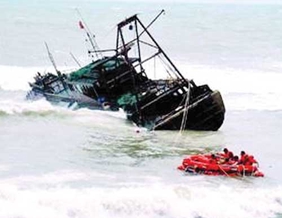 图③:一艘1000多吨的抽沙船在风浪的袭击下,从中间断裂沉入珠江。