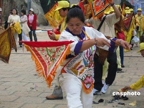 2006年4月20日,农历三月二十三,是妈祖诞生纪念日,连日来台湾妈祖信众到福建湄洲岛进香不绝于途。图为来自台湾嘉义、台中等地的妈祖信众在湄洲岛妈祖祖庙进香。中新社发 徐德金 摄 版权声明:凡标注有“cnsphoto”字样的图片版权均属中国新闻网,未经书面授权,不得转载使用。