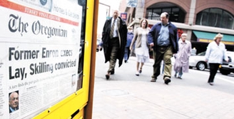 5月25日,登有美国安然公司前高层被判有罪消息的报纸出现在美国波特兰街头。新华社发