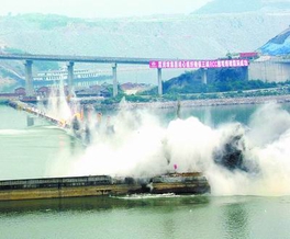 5月14日,三峡大坝三期围堰爆破模拟试验取得成功。