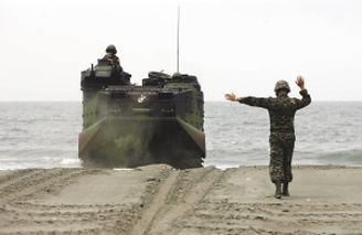 美卖给台湾的AAV7战车在演习中