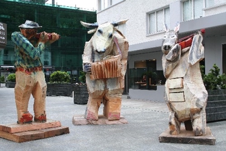 西欧“袖珍国家”列支敦士登面积仅一百六十平方公里,人口三点五万人。然而在这里,惟妙惟肖的各种雕像处处可见,特别是首都瓦杜兹,人口只有约五千人,而各种雕塑就有上百座。这张摄于六月九日的照片显示的是木雕《三重奏》,马、牛、驴三位“艺术家”合奏出美妙之音。
