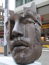 这张摄于6月9日的照片显示的是铁雕《自画像》:人在自己面前,到底是伟大还是渺小? 新华社记者 杨伶 摄