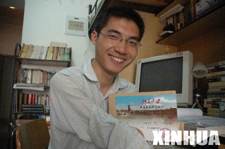 今年27岁的周月峰是浙江省海宁市一名农家子弟,5岁时因一次意外事故失去双手。在社会各界关怀下,他学会了用残臂自理日常生活,并用嘴咬笔写字。2000年7月,周月峰以优异成绩考入浙江大学历史系,2004年9月,他又以浙大历史系面试第一名的成绩被保送该校研究生。今年6月12日,周月峰收到北京大学博士研究生的录取通知书。新华社发(冯海军 摄)