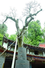 据岳喜伟介绍,去年7月9日,公园请来中科院昆明植物研究所、西南林学院等单位的专家对这株古玉兰做了专题研究,最后提出了抢救建议:一是解决树根部的排水、通风、透气的问题;二是移走紧邻古玉兰的两棵木本绣球;三是清除树干表面苔藓,并用药物作杀菌处理;四是用生根粉适时灌根。另外,今年内秀山公园的有关管理人员还借鉴通海传统花桩培植技法,用红土包裹古玉兰主干,促其发芽。