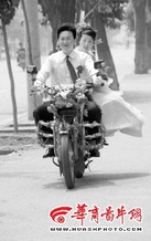 “你看,我的车多漂亮,骑了三年,和新的一样。”小李指着窗外那辆贴满鲜花与彩带的125型摩托花车,对记者说,“开着自己的摩托车接新娘一直是我的梦!”