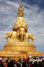 6月18日上午,目前世界最大、最高的十方普贤金像在四川峨眉山金顶开光,来自海内外的高僧大德、诸山长老与名人信士3000余人云集,举行开光法会。据悉,“十方普贤”金像由台湾著名建筑艺术家李祖原和峨眉山佛教协会创意设计,历时两年建成,金像通高48米、重600吨,是世界最高的汉传佛教圣像。中新社发 杨杰 摄 版权声明:凡标注有“cnsphoto”字样的图片版权均属中国新闻网,未经书面授权,不得转载使用。