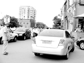 “晚上6点以前,常有交警来贴罚单,过了6点有停车管理员来看车,那时在这儿停车就没事了。”一位三轮车师傅说。