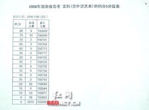 (2006年湖南省高考文科(含外语艺术)的档分5分段表)