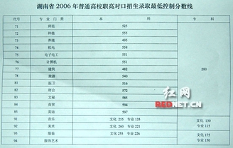 (湖南省2006年普通高校招生录取最低控制分数线)