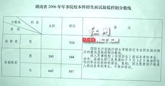 (湖南省2006年军事院校本科招生面试最低控制分数线)