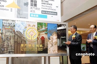 庆祝“澳门历史城区”列入世界文化遗产,澳门特首何厚铧等主持“相容并蓄——澳门历史城区”艺术展开幕礼。中新社发 梁永强 摄资料图片