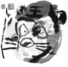 每当画画时,曹棽钰充满了对艺术的渴望。昨天下午,可爱的曹棽钰给大家来了个现场作画。只见拿起画笔的娃娃,郑重其事地用小胳膊支着调色板,边审视边画,有时停下来看看。十几分钟后,一幅毛笔画跃然纸上,她笔下的小狗恣意纵横,狗的灵性与墨团交织一起浑然天成。曹棽钰又仰头跟妈妈说:“妈妈,拿来刻章。”一句话把众人逗乐了。