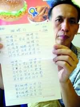 谢先生展示他创作的《蝴蝶飞》闽南语版歌词。