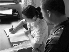 7月6日下午,一名去往商丘的旅客前来求助,工作人员正登记他的身份证号码。