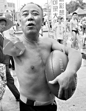 早在最后几个方队渡江时,这位老人就已在岸边摩拳擦掌跃跃欲试了。老人叫张作斌,今年82岁,是原广东省委宣传部副部长。他有些委屈地嚷道:“我去报名,他们说我年纪太大,不能游,那我只好等人家游完,自己再游。”张老伯说,自己上次游珠江是上世纪50年代初,80岁那年曾到大连海面游了5公里。“我现在经常到省人大对面共和村的游泳馆游泳,游起来没问题!”
