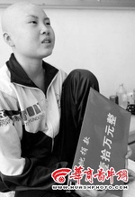 昨日下午,病床上的依曼笑得很灿烂。下午3时,团省委书记卫华与几名西安市内的慈善企业家,一同来到市中心医院看望了依曼。卫书记亲自将团省委筹得的第一笔捐款10万元交到依曼手中,并鼓励依曼鼓起勇气,与病魔抗争。她让依曼放松心情,吃好休息好,不要考虑其他问题,准备接受移植手术。