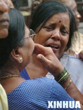 7月12日,在印度孟买的一间医院外,爆炸事件伤者的亲属悲伤不已。当天,印度报业托拉斯援引警方的最新统计说,在印西部城市孟买系列恐怖爆炸袭击中遇难的人数已升至190人。 新华社记者韩传号摄