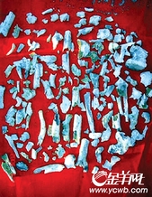 图:骨头上闪耀翠绿色的光泽。