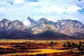 名列五岳之首的东岳泰山,位于山东省中部的泰安市,长约200 千米,主峰玉皇顶,高1 524米 。山峰挺拔峻秀, 雄伟壮丽,有“登泰山而小天下”的气势。山上有南天门、斗母宫、经石峪、黑龙潭、日观峰等古迹。泰山已有20亿年的历史,是一个由断层上升而形成的断块山。在漫长的地质年代中,许多山峰都被侵蚀化为平地,而由坚硬的花岗岩、片麻岩组成的泰山,却仍巍然屹立在大地上,难怪人们要用“稳如泰山”来形容事物的稳固,不可动摇。
