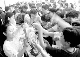 在避孕套免费发放现场,市民都争着索要(资料图片)