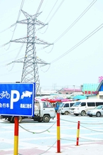 高压线下本来禁放任何物品,可偏偏被人设立为停车场。这是笔者昨天在西八里庄附近一处菜市场见到的奇怪现象。这个停车场对高压线路输电安全存在重大隐患。