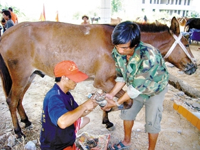 马锅头们忆起刻骨铭心的两件事总是心有余悸。今年5月的一天,马帮到了普洱地域的一片树林。在大家将马匹拴上树干的过程中,猛地从一处草丛飞出上千只马蜂,伴随着尖利的叫声扑向人马。群蜂穿过厚密的树叶,发出“嚓啦啦”的声响。见势不妙,马锅头急忙护住头部躲藏起来,有三匹马却遭发狂的马蜂乱刺。待蜂群散尽,受伤的马均“扑通扑通”倒在地上,一病不起。马锅头找来兽医为马各打了三天吊针,病马才逐渐恢复生机。
