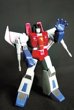 那年暑假,我和外婆来到中山的亲戚家玩,亲戚家当时可以收看香港电视节目,尽管是很不清晰的黑白电视,不过对于我来说,无疑是大开眼界!一天,电视里忽然出现了一套新的动画片《变形金刚》,我马上就被里面的机器人吸引住了,多么神奇啊!居然可以变形!因为是黑白电视,只能看到屏幕上的机器人都是不同程度的灰,我很难分辨谁是谁,只是依稀听得出一边是“狂派”,一边是“博派”,“狂派”是坏蛋,“博派”是好人。我记住了不少变形金刚的名字,其中最难忘的是那个很奇怪的名字“星星叫”,因为和他外形一样的有几个,我无法分辨出来,只是凭借他那尖锐的声音牢牢地记住了他。“星星叫”是个经常想背叛老大的二把手,我很喜欢他的率直,也喜欢他的自私,我觉得我很像他。如今,我在变形金刚迷友的圈子里的名字就叫“星星叫”,甚至在生活上,不少朋友也会把我称呼为“星星”或“叫叫”。