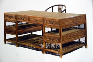 麻利收藏的明代黄花梨几式书案圈椅,价值一千万元以上。