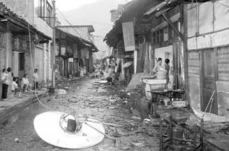 豆沙古镇街头一片狼藉。
