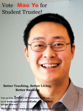 作为外国学生,成功当选确实不易。叶茂曾经遭到校园内的保守派势力的猛烈攻击,但他始终顶住压力,“我的每一条主张都是为了整个学校的利益。”叶茂提出了“betterteaching;better living;better ranking(更好的教学、更好的生活,更好的排名)”的竞选纲领。其中,“更好的教学”目标直指本科生课程评估体系改革。康乃尔大学每年都会对教师进行评估排名,但与美国其他大学一样,评估结果一般不对学生公布。叶茂提出有计划、有步骤地向学生公开评估结果,以促进教师认真教学。