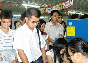 7月22日、23日,“2006届全国高校毕业生(东莞)供需见面会”在东莞市中心人才举行,共有近两百家企业参加了此次招聘会,来自全国各地的5000多应届毕业生到现场求职。在富士康企业招聘展位前,来自山东理工大学的刘书广显得有些郁闷,因为招聘人员刚刚拒绝了他应聘该企业软件工程师的请求。