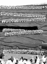 由“铁三角”张艺谋、王潮歌和樊跃联合执导,耗资高达2.5亿的大型实景演出《印象·丽江》雪山篇,昨天在玉龙雪山脚下拉开帷幕。这部汇集了国内最优秀的导演团队,并由云南当地的纳西族、彝族、普米族等10个少数民族,500名普通的农民组成演出团的大型演出,在让人肃然起敬的雪山间,用他们朴实的感情和纯净感动着每一位观众。总导演之一张艺谋称,对于这台演出他是肯定的,尤其是那些所谓“土人”们的表现更是百分之百的好,非常出色。对于首次公演的效果,他只打了80分,并称艺术是不能用分数来衡量的,为了给进一步地调整完善工作留出空间,不能把话说得太满。