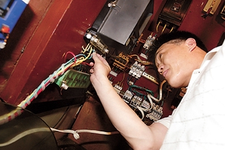 图为工作人员正在检查问题电路。本报记者张春海摄
