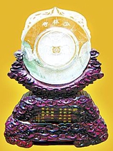 “三教九流图”是用黄色纯天然水晶雕刻而成。水晶有着多样的涵义,在西方国家,人们将黄水晶誉为“友谊之石”。我就是要通过玉雕作品,表达中国人热爱和平的美好愿望:三教一体,九流归一,世界万物归根到底最终要实现大同。