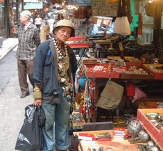 沿文武庙前的楼梯往下行便抵达摩罗街。它原名LascarRow,因早年建有印度籍勤务兵宿舍,而被称作“摩罗街”,分上下两段。摩罗上街也是一条出名的古董街,长约二百米,狭窄的街巷开设了三十多家古董店。这里出售的古董古玩有玉器、陶瓷、铜佛、铜鼎、金石书画、金漆木器……一些零星细物如旧表、旧钢笔、旧电话、米老鼠、芭比娃娃等西洋小玩意儿都杂陈在货架上。