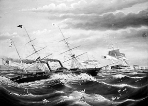 1853年,4艘美国军舰轰开了日本紧锁的国门,图为美国军舰正在向日本航行。