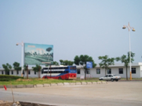 公交车站对面马路的围墙上挂着一副巨大的江西省奥林匹克体育中心效果图,标明奥体中心工程建设用地800亩(规划用地约937亩),以及注明奥体中心首期工程为“一场两馆”:体育场一座,游泳跳水馆一座,球类馆一座。工程计划预计2008年建成。