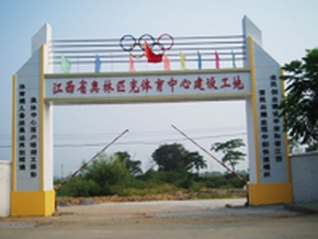 江西省奥体中心建设工地的大门的正对处就是施工现场