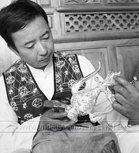 寸发标告诉记者,新华村的小银匠从小就走南闯北,到处干手艺谋生,同时在游历中学习各地的文化,丰富提高自己的技艺。很多来自新华村的小银匠在西藏、青海等很多地方打响了名头,承揽制作了大量藏传佛教寺院的铜宝顶、法号、佛像等宗教用品。