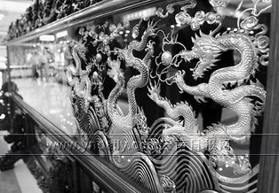 手工打制的银质九龙壁
