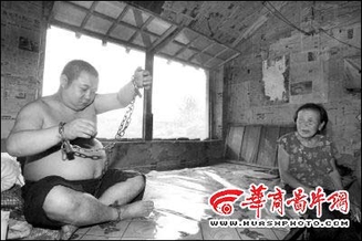 落榜男子患疯病打死父亲家人无奈将其锁起(图)